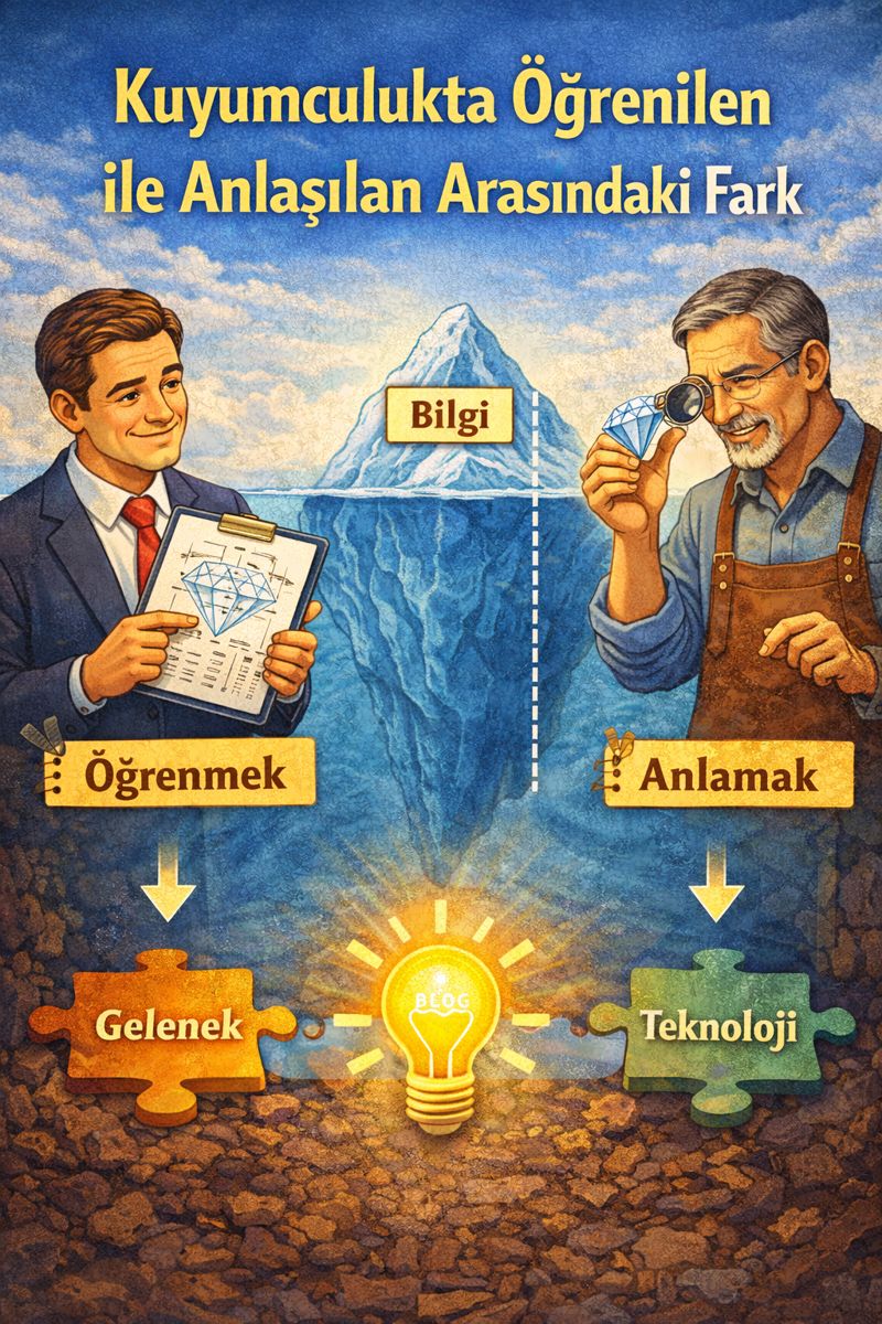 Kuyumculukta “öğrenilen” ile “anlaşılan” çoğu zaman aynı sanılır. Oysa mesleğin derinliği, bu ikisi arasındaki farkta ortaya çıkar. Öğrenilen; aktarılabilir, anlatılabilir ve tekrar edilebilir bilgidir. Anlaşılan ise yaşanarak, sonuçları görülerek ve zihinsel olarak içselleştirilerek oluşur. Mesleki seviye, ne kadar öğrenildiğinden çok ne kadarının gerçekten anlaşıldığıyla belirlenir.