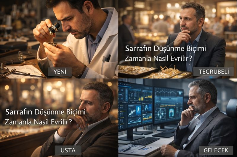 Sarrafın düşünme biçimi, mesleğe ilk adım atıldığı günle yıllar sonra aynı kalmaz. Bu evrim; yaşla değil, maruz kalınan hız, risk ve tekrar eden kararların birikimiyle gerçekleşir. Sarraflık, yalnızca altını tartmak değil; zamanı, belirsizliği ve riski tartmayı öğrenmektir.