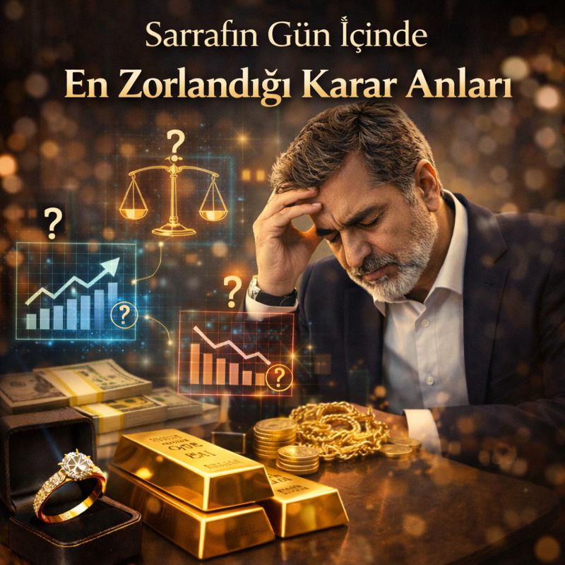 Sarrafın işi dışarıdan bakıldığında fiyat takibi, alım–satım ve müşteri ilişkileri gibi görünür. Oysa günün asıl yükü, vitrin önünde değil; karar anlarında taşınır. Bu kararların çoğu yüksek sesle yaşanmaz, fark edilmez ve çoğu zaman “rutin” sayılır. Ancak mesleği zorlayan tam da bu sessiz anlardır.